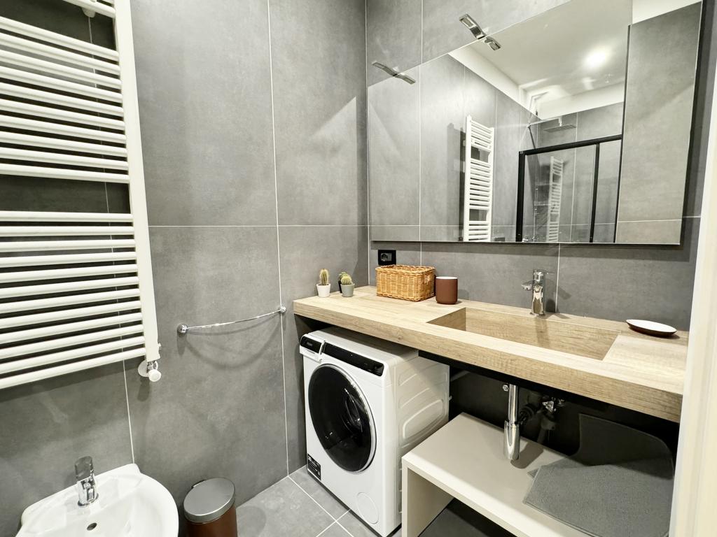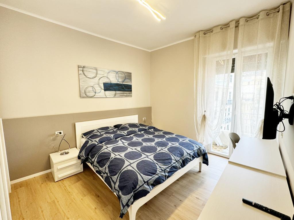 Alassio, in zona centrale, a pochi passi dal budello, a 50 metri dal mare, proponiamo in locazione ad uso turistico, bilocale frutto di una completa ristrutturazione. l'appartamento, situato al quarto ed ultimo piano, con ascensore che arriva al terzo piano, oltre una breve rampa di scale a piedi, è composto da: ingresso, soggiorno con divano letto, angolo cottura, camera matrimoniale, ripostiglio e bagno non finestrato, con doccia. da entrambe le stanze si accede al balcone con vista sulle colline circostanti. dotato di aria condizionata, tv, lavatrice e lavastoviglie. arredamento su misura e finiture di pregio. il canone di locazione varia a seconda del periodo richiesto. non sono accettati animali. al canone di locazione vanno aggiunte le spese di mediazione (12% + iva), le utenze e la tassa di soggiorno. cod. citra 009001-lt-1197. cin it009001c268ulrmof cl. e ipe 182,55 kwh/m²/anno