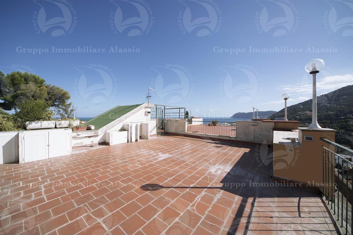 Nella primissima collina di alassio, in una zona incantevole, immersa nel verde e nella quiete, proponiamo in vendita un luminosissimo alloggio con splendida vista panoramica sul mare e sulle colline circostanti. l’immobile si compone di ingresso su una spaziosa e ariosa zona living con accesso diretto a un’ampia balconata, di una cucina separata e abitabile, ideale per momenti conviviali, di una grande e soleggiata camera matrimoniale anch’essa dotata di accesso al balcone, e di un bagno finestrato ampio e funzionale. a completare la proprietà, un meraviglioso terrazzo soprastante l’appartamento, da cui si può godere di una vista spettacolare a 360 gradi sul blu del mare e sull’intenso verde delle colline: uno spazio perfetto per rilassarsi, prendere il sole o organizzare indimenticabili cene all’aperto con gli amici. l’alloggio è situato in una piccola palazzina signorile, attualmente oggetto di interventi di manutenzione straordinaria, e dispone di una comoda area esterna condominiale con posti auto oltre a un pratico accesso pedonale che permette di raggiungere il centro in soli 950 metri. pace, relax e luminosità sono i tratti distintivi di questa abitazione, che regala un panorama aperto e suggestivo sulle colline e scorci incantevoli di mare dal terrazzo. ???? prenota subito la tua visita senza impegno e lasciati conquistare da questa oasi di tranquillità ad alassio.
