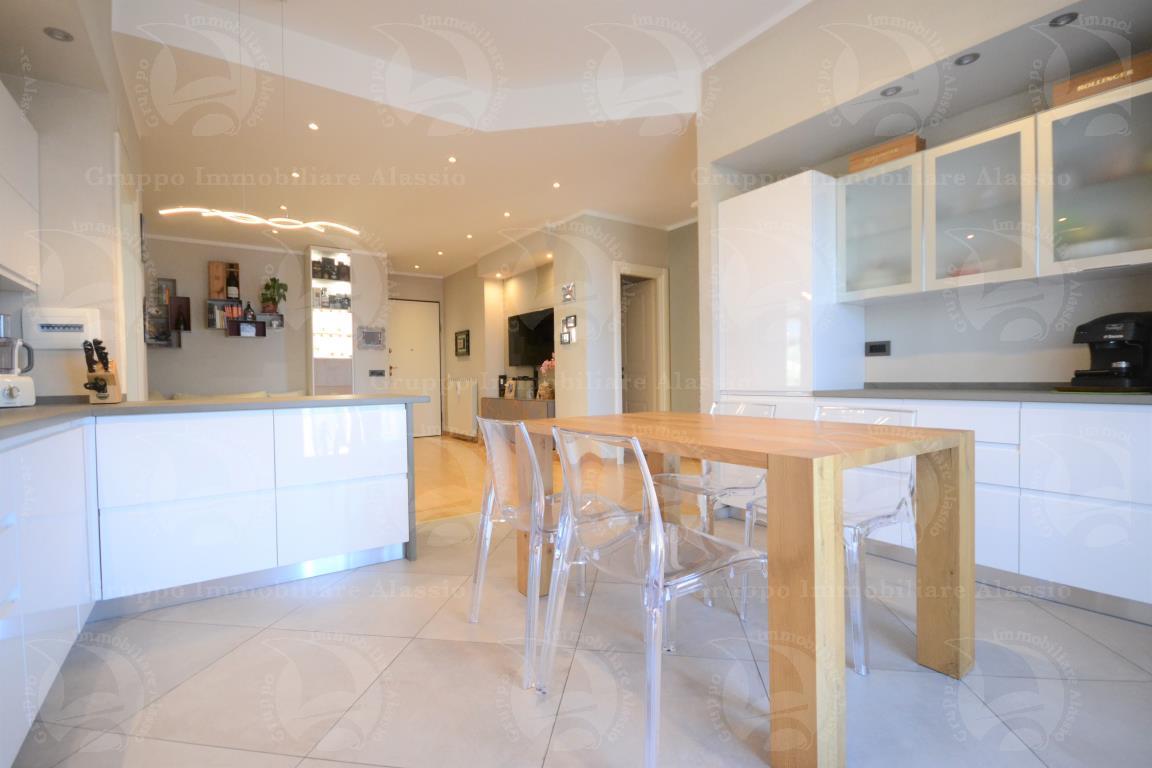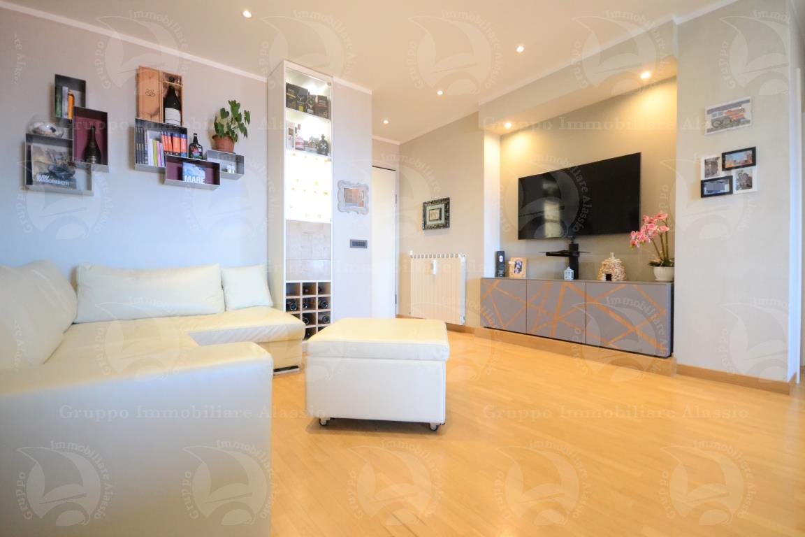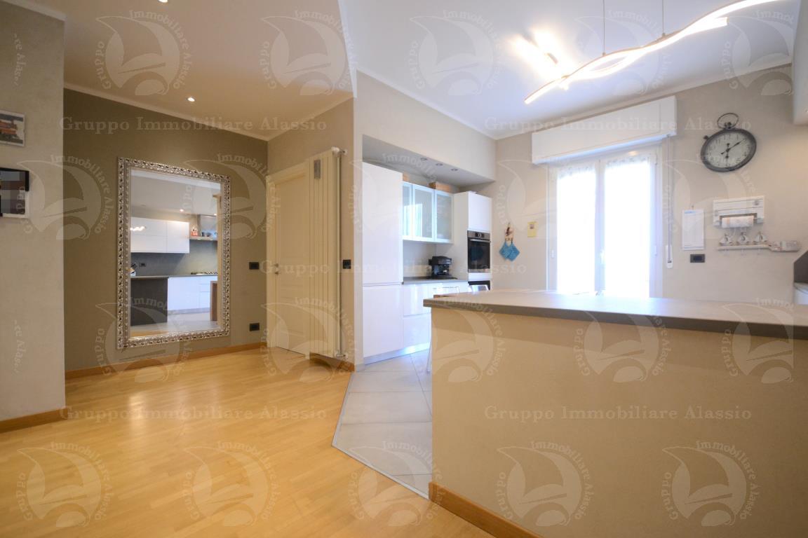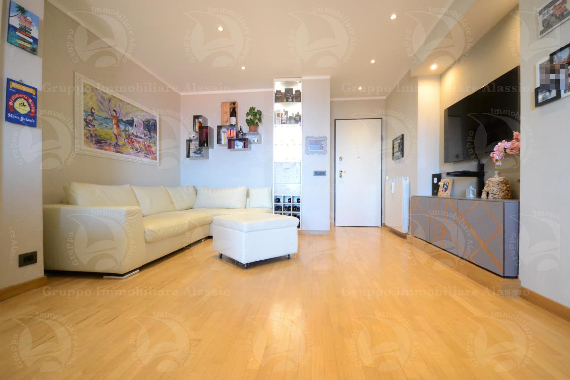 Alassio, proponiamo ampio appartamento vista mare ristrutturato e arredato, soleggiato da mattina a sera. l'appartamento è composto da un grande soggiorno con cucina a vista e ampia balconata vista mare, tre camere da letto matrimoniali, doppi servizi, ripostiglio e balcone. completa la proprietà un ampio locale sottotetto e il posto auto condominiale. riscaldamento autonomo e basse spese condominiali.