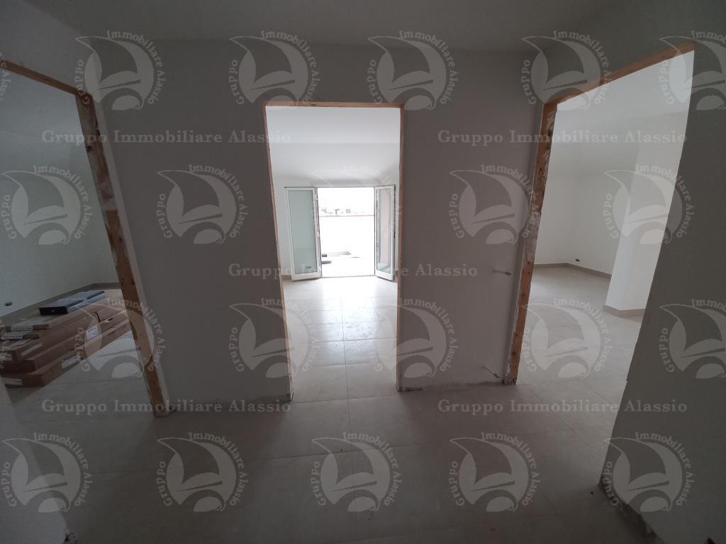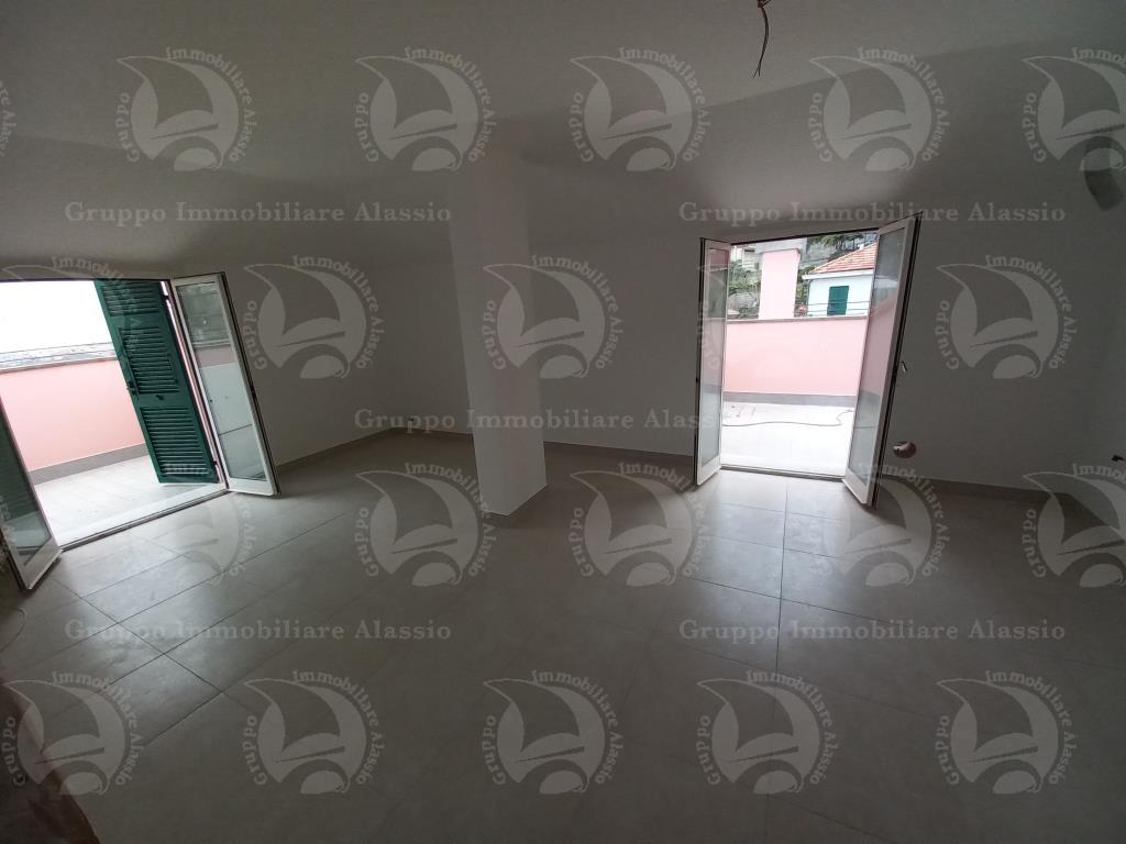 Alassio, a 800 metri dal mare zona piscina, si vende grande appartamento, totalmente ristrutturato, al terzo ed ultimo piano, composto da ingresso/disimpegno, cucina abitabile, soggiorno, due camere, due bagni, 4 locali sottotetto sfruttabili al massimo, per le altezze interne, un terrazzo con vista sino al mare di 16 mq,, più due laterali da 12 mq. ognuno.