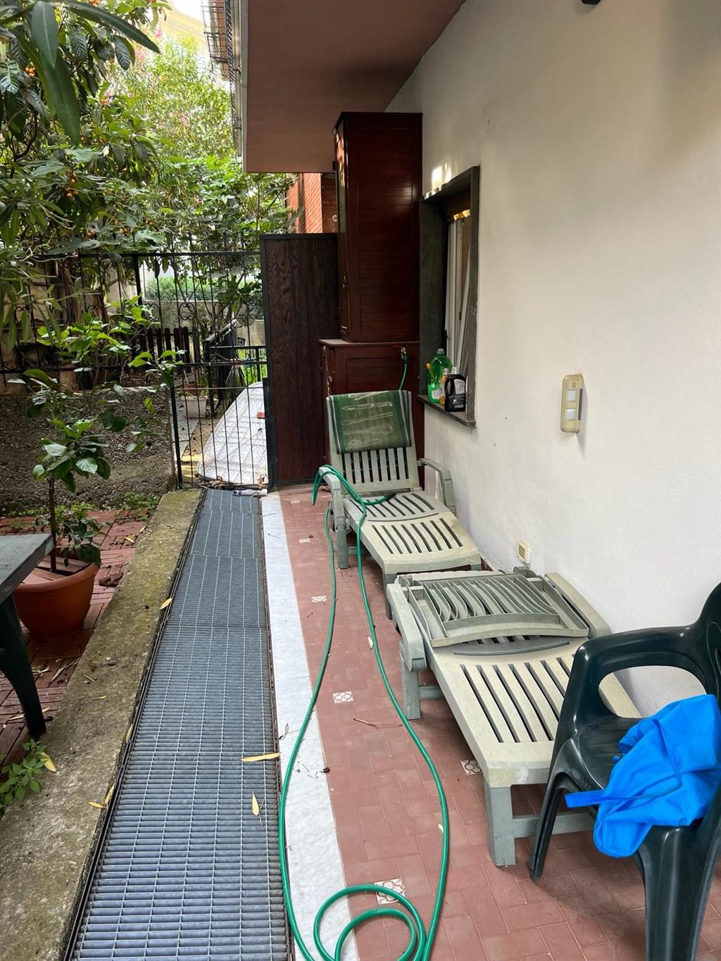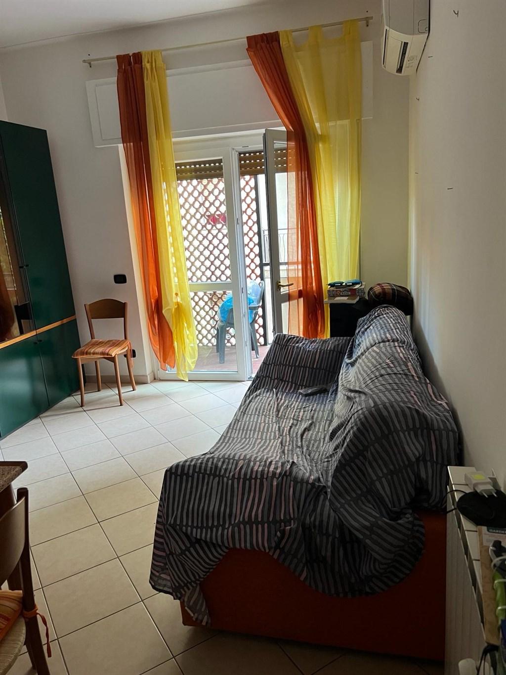 Alassio, nella zona della piscina comunale, ad 800 metri dal mare, viene proposto in vendita, un bilocale posto al secondo piano di una palazzina composta da tre piani. porta blindata per accedere in casa dove troviamo un ampio soggiorno con angolo cottura, dal quale si accede subito su grande balcone per proseguire verso un terrazzo ombreggiato da oleandri e buganville. tornando nell'appartamento, dal soggiorno disimpegno tra bagno, con finestra e camera da letto matrimoniale. l'appartamento,10 anni fa, era stato oggetto di ristrutturazione, attualmente, visitandolo, risulta confusamente abitato, quindi un po' in disordine per i tanti oggetti sparsi per la casa.
