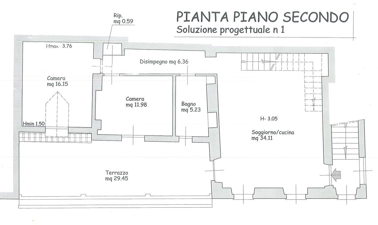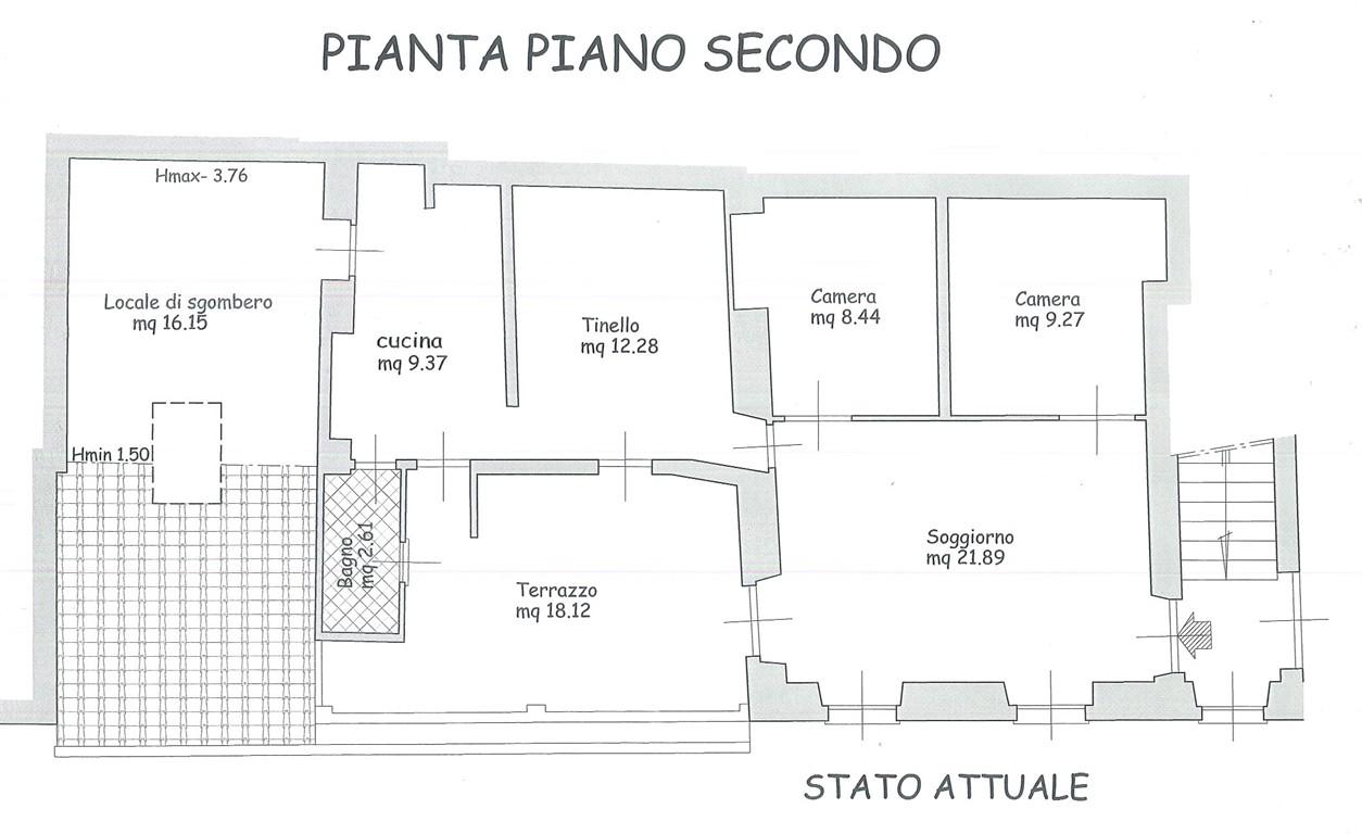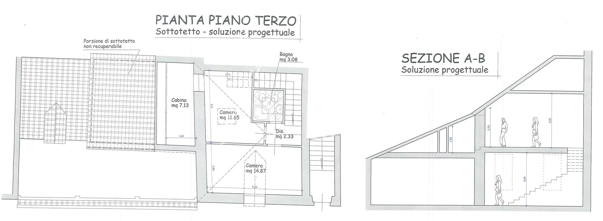 Alassio, con accesso da via vittorio veneto, ma affacciato su ampia piazza, si propone in vendita un grande appartamento attualmente composto da soggiorno, tinello, cucina, due camere da letto, un bagno, un locale di sgombero e terrazzo, ma essendo un appartamento con un soffitto altissimo, applicando la normativa vigente, sul recupero dei sottotetti, si può rendere abitativo la parte superiore dell'attuale alloggio con il risultato finale di un soggiorno con angolo cottura di 35 m², due camere da letto, un bagno e un terrazzo di 30 m² al piano secondo, poi con scala interna per il piano superiore due camere da letto, un bagno e una cabina armadio di 7 m². siamo a 50 metri dal mare e dal terrazzo vediamo il mare. al piano terra, vicino all'ingresso, di proprietà, vi è una cantina di 17 m² dove attualmente é allo studio la realizzazione di un ascensore a servizio del palazzo.