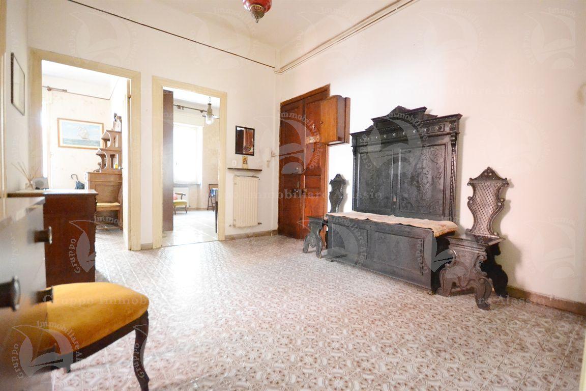 Alassio, grande appartamento centralissimo a 100 metri dalla spiaggia. al secondo piano di un piacevole palazzotto ligure con facciate rifatte e decorate, dotato di un comodo ascensore; le scale sono state tinteggiate ed il tetto è nuovo. l'appartamento gode di un'invidiabile luminosità dovuta alla tripla esposizione. i 95 mq sono così suddivisi: grande ingresso, soggiorno con balcone, cucina abitabile con balcone, due camere da letto matrimoniali, uno studio ed il bagno finestrato. attualmente l'appartamento mantiene la disposizione originale, dominata dall'ingresso signorile che distribuisce l'accesso alle varie stanze. un'eventuale ristrutturazione permetterebbe di creare facilmente un secondo bagno e di distribuire gli spazi con un taglio moderno che vada ad utilizzare l'ampia superficie dell'ingresso. termo autonomo, secondo piano con ascensore, due balconi. ad un passo da questa piacevole e funzionale abitazione troviamo un'ampia scelta di servizi e negozi tra cui: farmacia, supermercato, poste, chiesa, bar, tabaccheria, centri medici, veterinario, mercato settimanale, distributore di carburante, officine auto e moto.