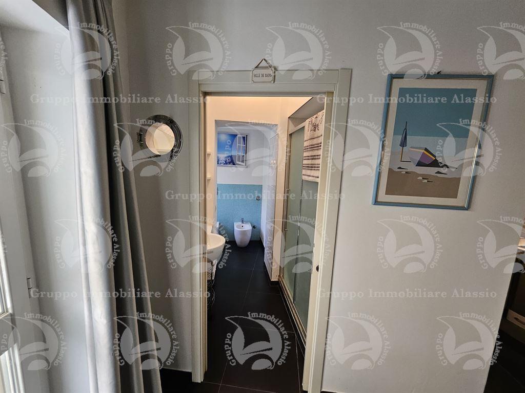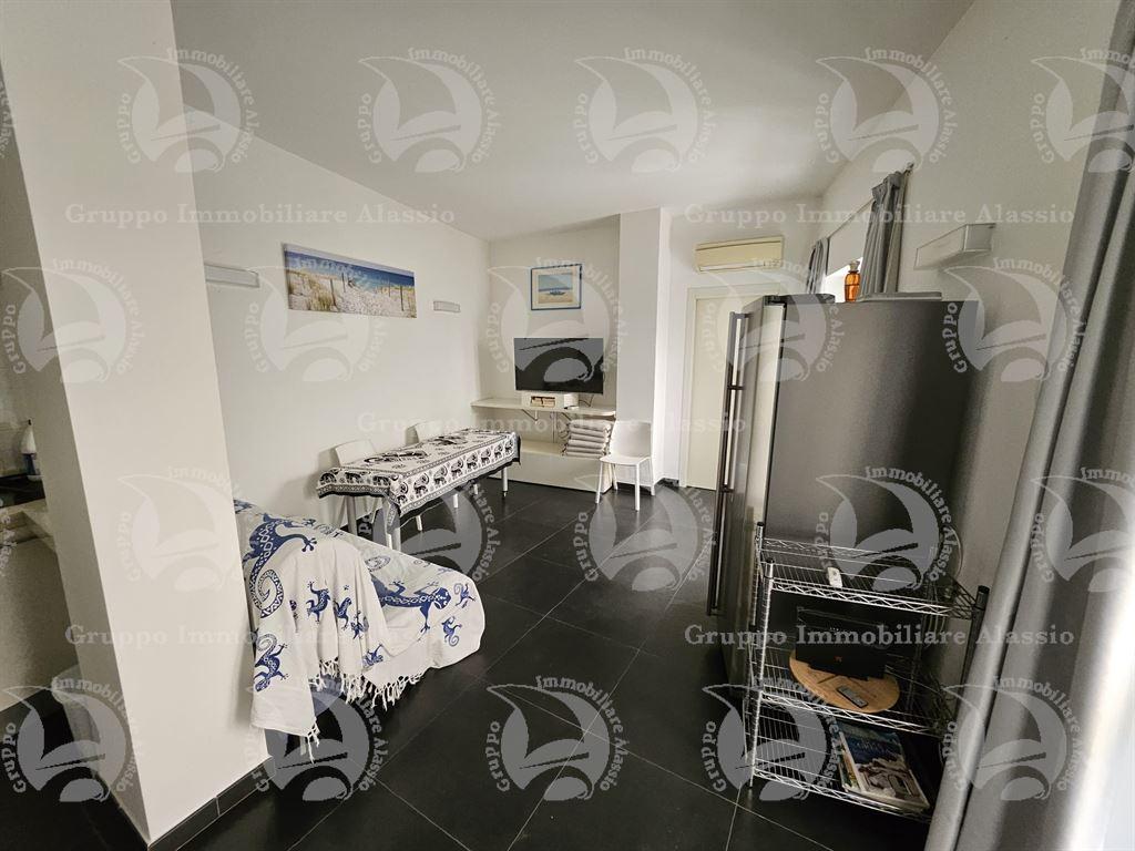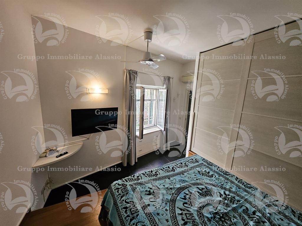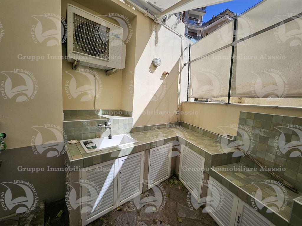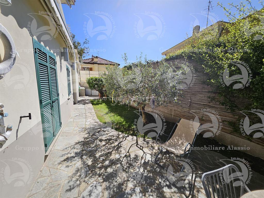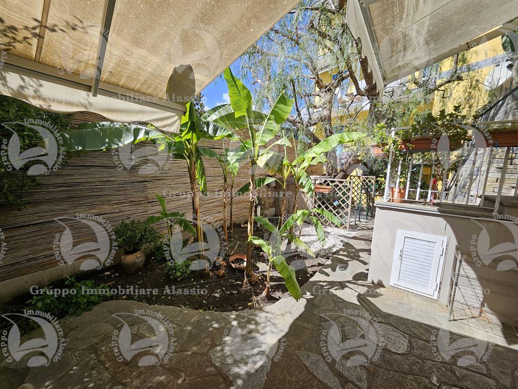 Alassio, nella zona delle scuole medie ollandini, viene proposto in vendita un appartamento al piano terra con ingresso privato e grande giardino attrezzato e piantumato con agrumi e ulivi. l'alloggio é composto da ingresso diretto nel soggiorno, cucina in disparte, camera da letto matrimoniale, bagno e ripostiglio, il tutto che si affaccia sul giardino, totalmente dotato di tende estendibili elettricamente, creando una piacevole zona d'ombra, anche sulle parte estrema a sud, dove é stata istallata una zona cottura per piacevoli serate con amici. completa la proprietà un posto auto e un posto moto. volendo vi é la possibilità di acquistare un grande box auto soppalcabile.