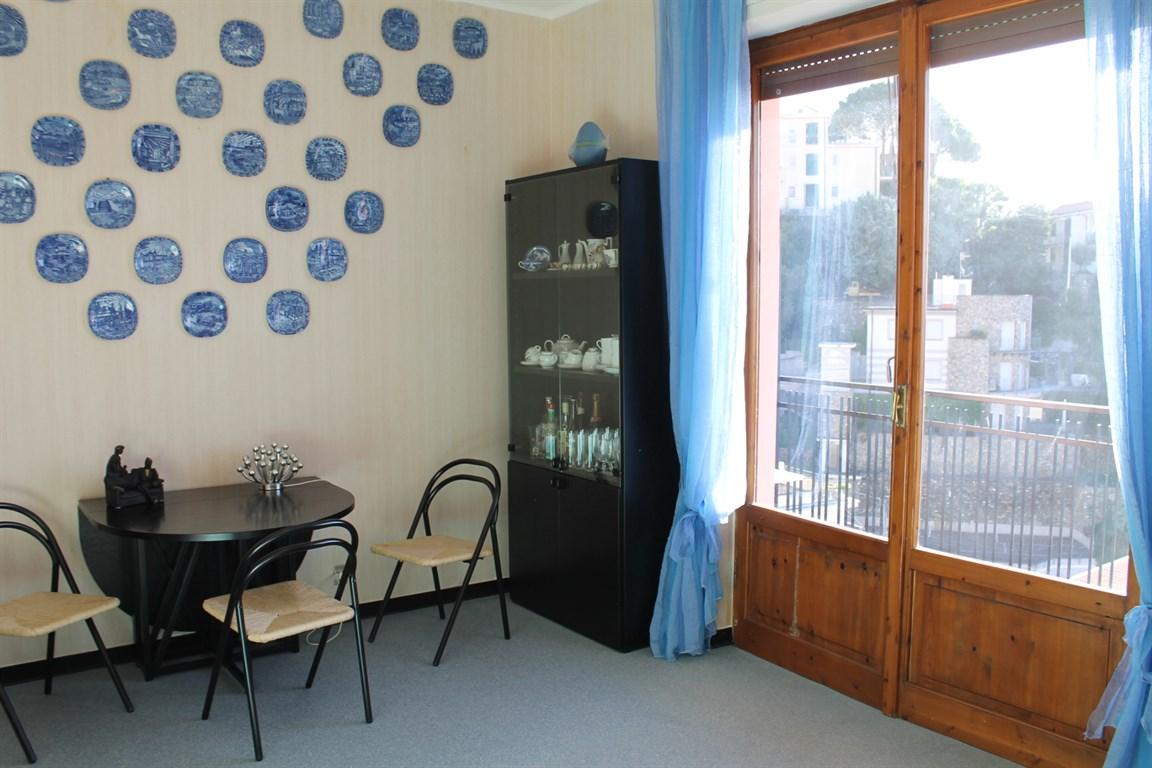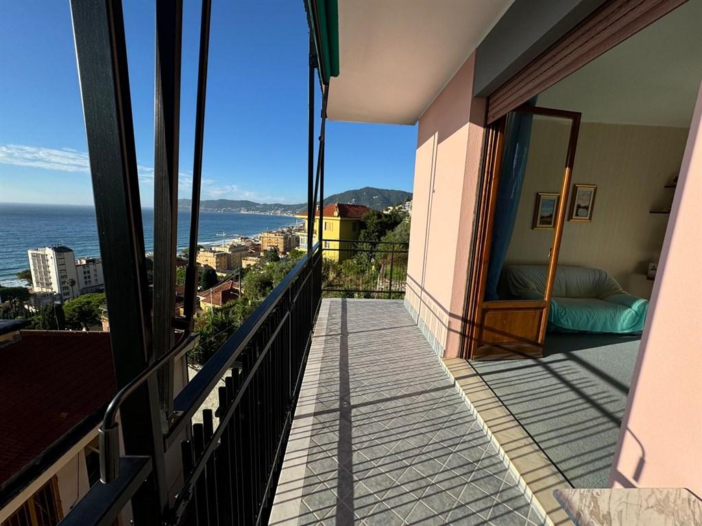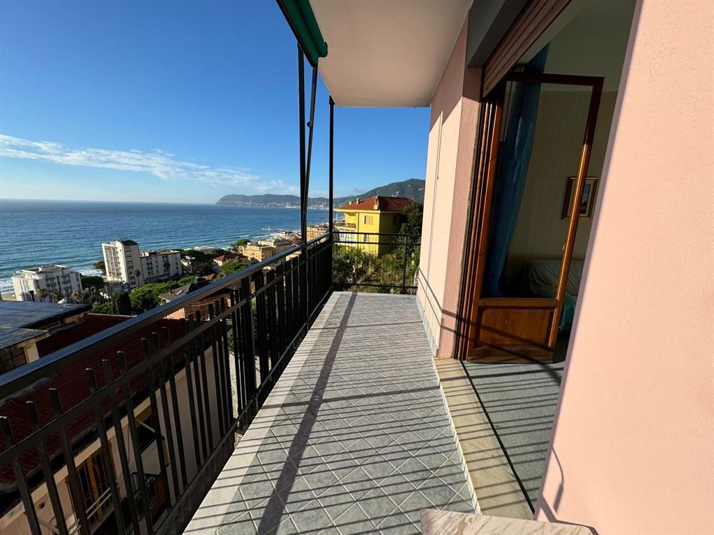 Alassio, nella primissiama collina del borgo coscia alloggio vista mare con garage sotto casa, secondo piano con ascensore, di circa mq. 80 da ristrutturare composto da ingresso corridoio, cucina con balcone, 2 camere da letto, bagno e soggiorno con terrazzo vista mare, termo autonomo