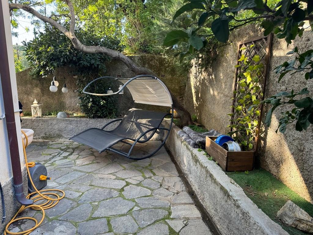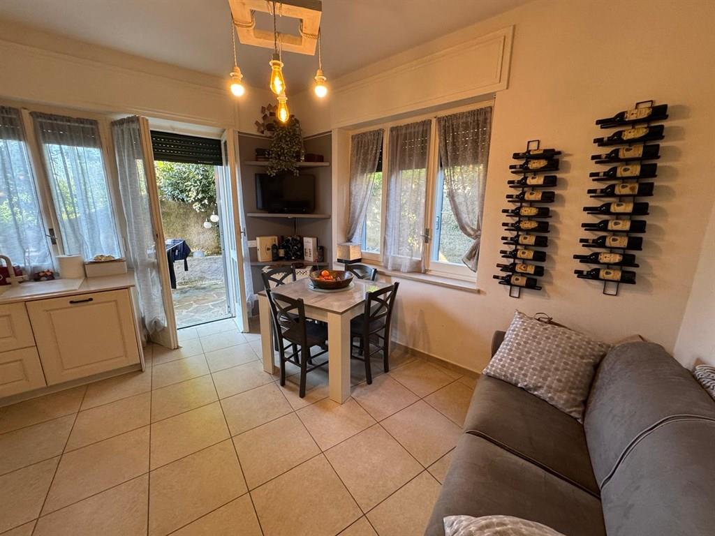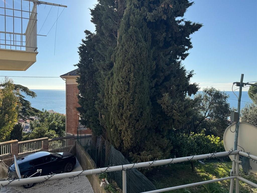 Alassio, prima collina piccolo trilocale ristrutturato con terrazzo con vista mare e giardino privato composto da ingresso, cucina abitabile, 2 camere, bagno e ripostiglio, termo autonomo aria condizionata.