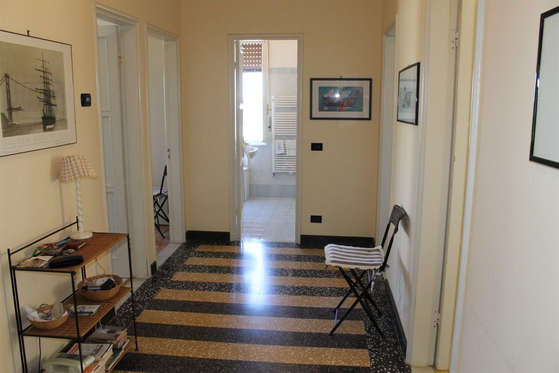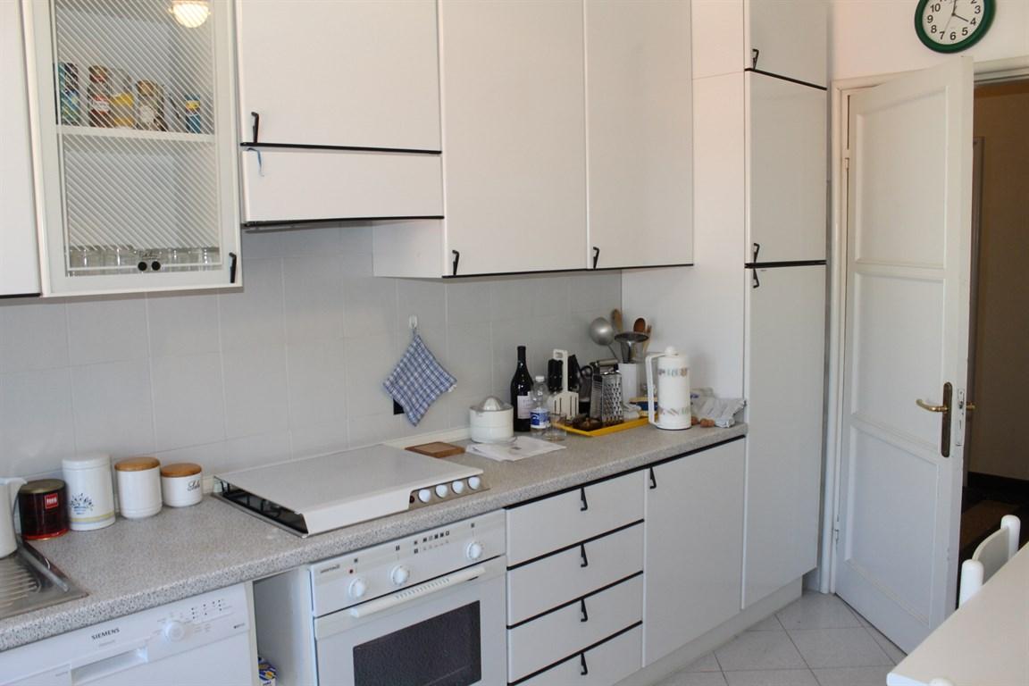 Alassio borgo coscia, in palazzo signorile ultimo piano con ascensore, ampio alloggio, in buono stato di manutenzione, composto da ingresso, soggiorno, cucina, 2 camere da letto, 2 bagni, ripostiglio, balcone. termo autonomo, e due posti auto di proprietà nelle vicinanze.