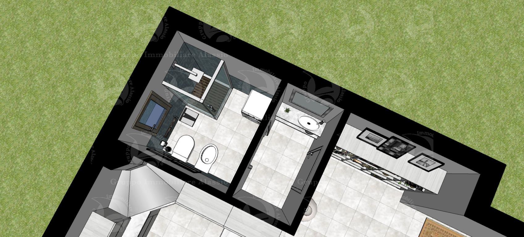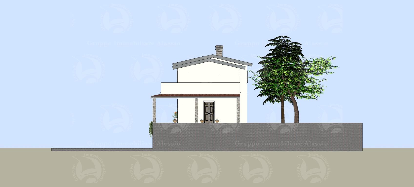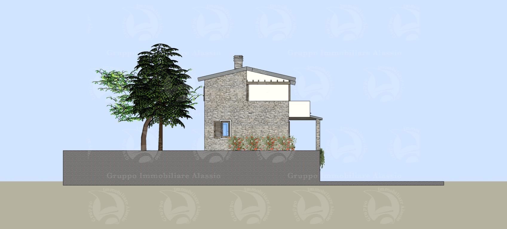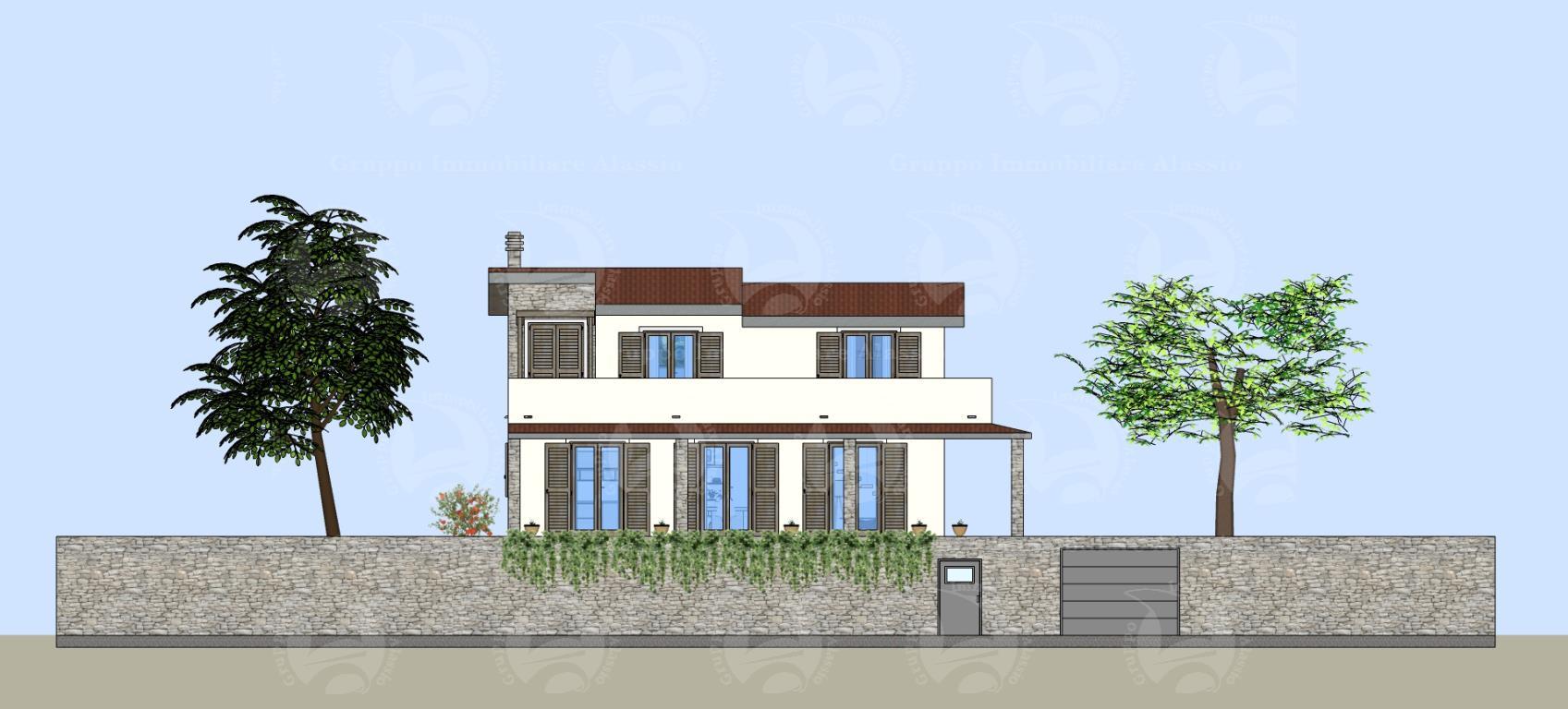 L’area si sviluppa per 7.000 mq a ponente della strada per vegliasco, risulta essere un area caratterizzata da ampi spazi piani, con terrazzamenti limitatissimi e pertanto bene si presta a localizzare interventi di nuova costruzione il lotto è ben raccordato alla viabilità esistente che lo costeggia per tutto il suo sviluppo e comunque raggiunto anche dalla rete di creuze e mulattiere che innerva la maggior parte del territorio collinare strutturando tuttora il sistema di connessioni e di comunicazioni del territorio. la viabilità è rappresentata da una strada asfaltata che si distacca dalla principale costituita dalla strada panoramica solva vegliasco per raggiungere la località castellaro monte bignone e servire così alcuni insediamenti sparsi caratterizzati dalla edificazione di pochi corpi di fabbrica a destinazione residenziale. su questa area è prevista la realizzazione di una villa singola, distribuita su tre piani e così attualmente suddivisa: nel piano seminterrato una cantina di 110 mq. e un box auto di 40 mq. contornati da intercapedine ispezionabile; al piano terra un grande soggiorno living di 60 mq., con antibagno e bagno al piano, piano contornato da un portico di 50 mq.; al primo piano vi sono tre camere dal letto, un bagno e un terrazzo di 31 mq.