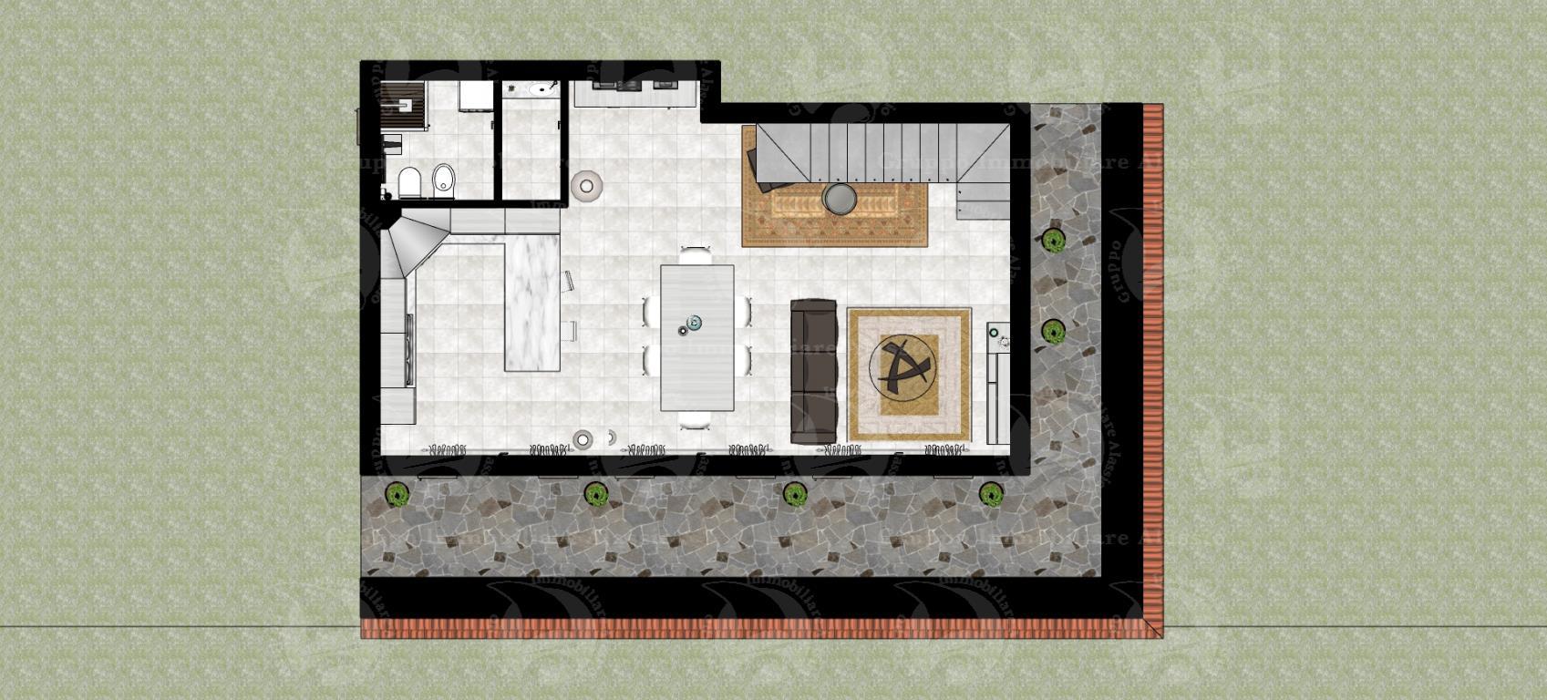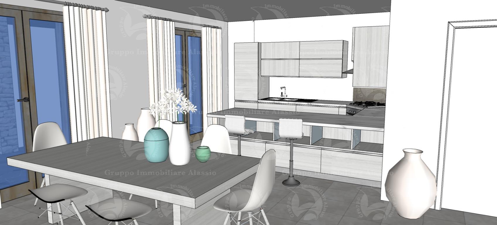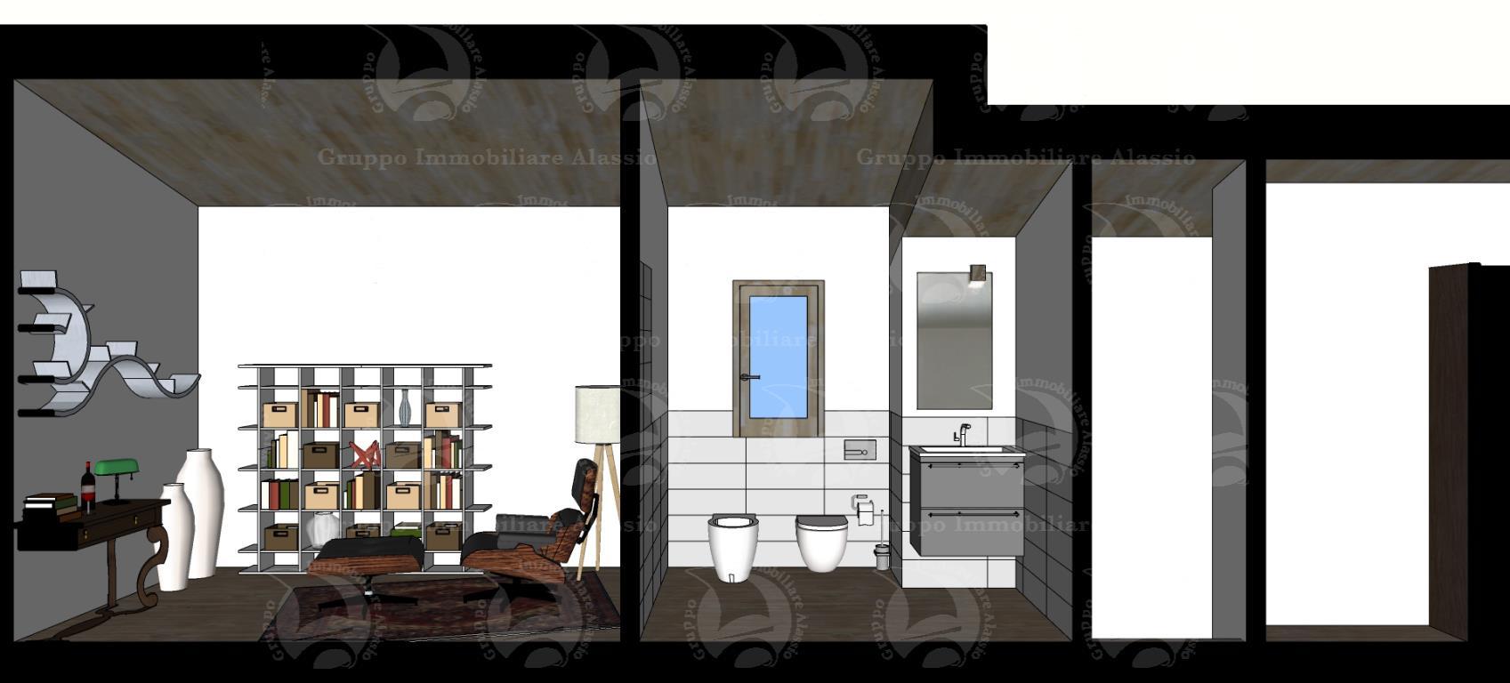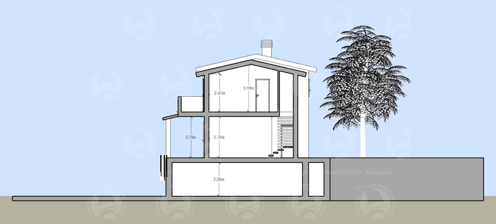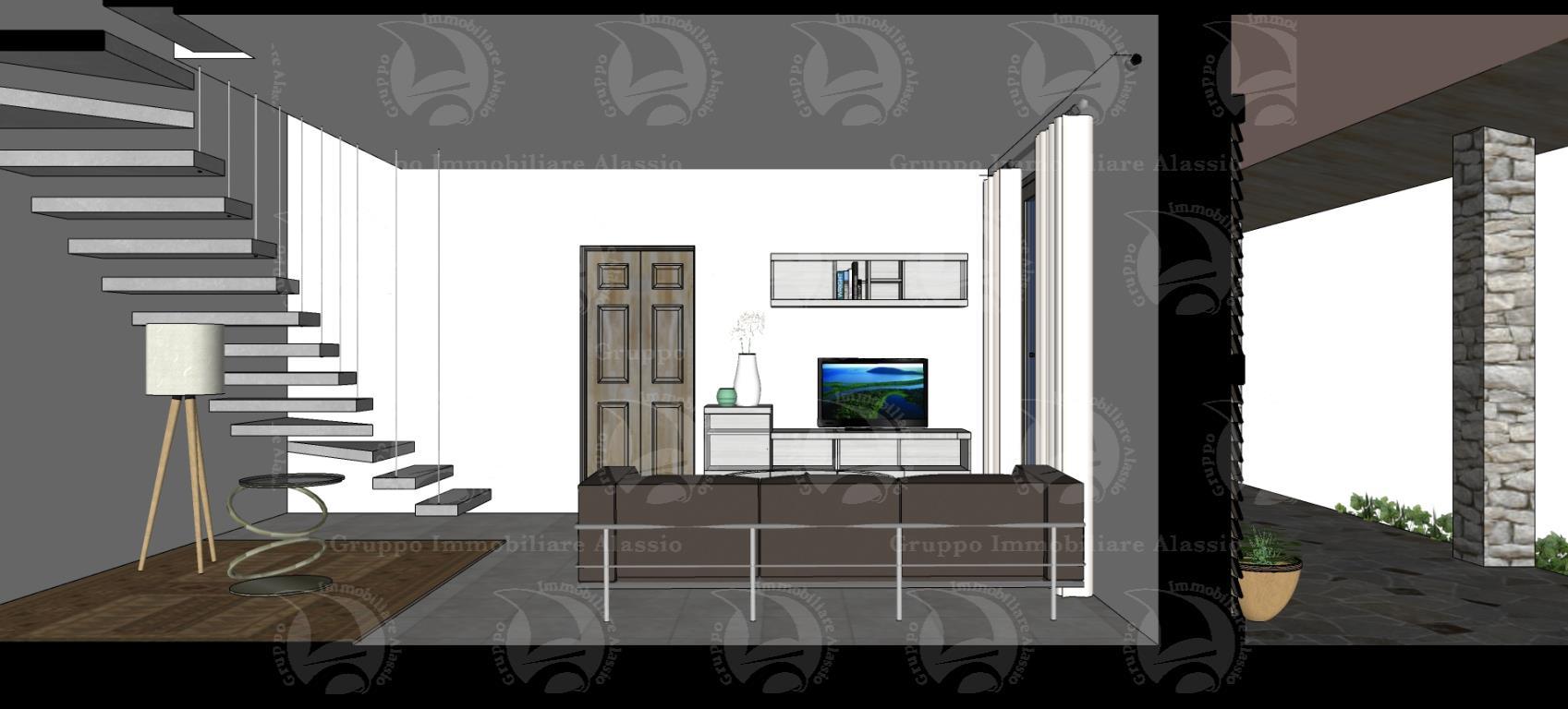 L’area si sviluppa per 7.000 mq a ponente della strada per vegliasco, risulta essere un area caratterizzata da ampi spazi piani, con terrazzamenti limitatissimi e pertanto bene si presta a localizzare interventi di nuova costruzione il lotto è ben raccordato alla viabilità esistente che lo costeggia per tutto il suo sviluppo e comunque raggiunto anche dalla rete di creuze e mulattiere che innerva la maggior parte del territorio collinare strutturando tuttora il sistema di connessioni e di comunicazioni del territorio. la viabilità è rappresentata da una strada asfaltata che si distacca dalla principale costituita dalla strada panoramica solva vegliasco per raggiungere la località castellaro monte bignone e servire così alcuni insediamenti sparsi caratterizzati dalla edificazione di pochi corpi di fabbrica a destinazione residenziale. su questa area è prevista la realizzazione di una villa singola, distribuita su tre piani e così attualmente suddivisa: nel piano seminterrato una cantina di 110 mq. e un box auto di 40 mq. contornati da intercapedine ispezionabile; al piano terra un grande soggiorno living di 60 mq., con antibagno e bagno al piano, piano contornato da un portico di 50 mq.; al primo piano vi sono tre camere dal letto, un bagno e un terrazzo di 31 mq.