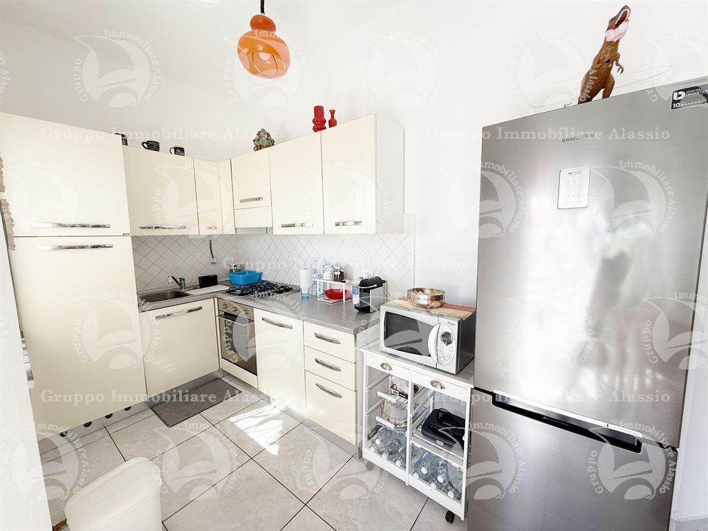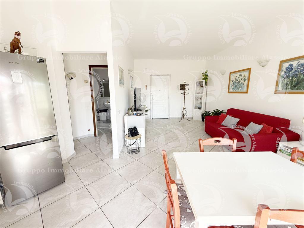 Albenga – a pochi passi dallo svincolo per alassio, in posizione strategica comoda ai servizi, al centro e a soli 500 metri dal mare, proponiamo in vendita ampio bilocale all’interno di un complesso residenziale signorile, immerso nel verde e dotato di piscina condominiale e posti auto riservati. l’appartamento, posto al primo piano con ascensore, si sviluppa su circa 60 m² e si compone di: luminoso soggiorno con cucina a vista, camera matrimoniale e spazioso bagno. la zona giorno si affaccia su un balcone con incantevole vista sul verde circostante, sul mare e sull’isola gallinara. dal balcone si accede a una splendida terrazza di circa 30 m², ideale per pranzi, cene e momenti di relax all’aperto durante tutto l’anno, grazie al clima mite della riviera ligure. il riscaldamento è autonomo e la proprietà include anche una comoda cantina. il complesso, curato e ben abitato, dispone di posti auto riservati con accesso tramite sbarra e di aree verdi rigogliose che garantiscono privacy e un’atmosfera di tranquillità. cl. e. ipe 104,94 kwh/m²/anno. € 199.000