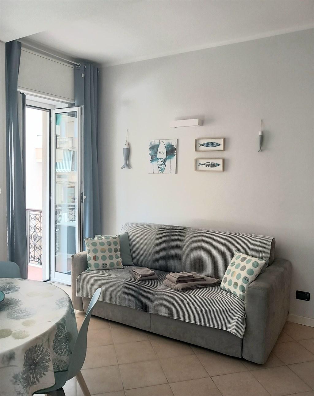 A pochi passi dal mare, bilocale con posto auto, in buono stato di conservazione, aria condizionata, composto da soggiorno con angolo cottura, camera matrimoniale, bagno e balcone.