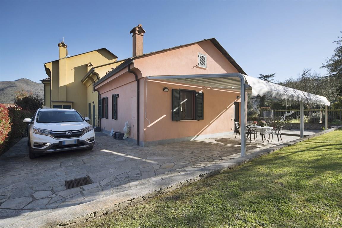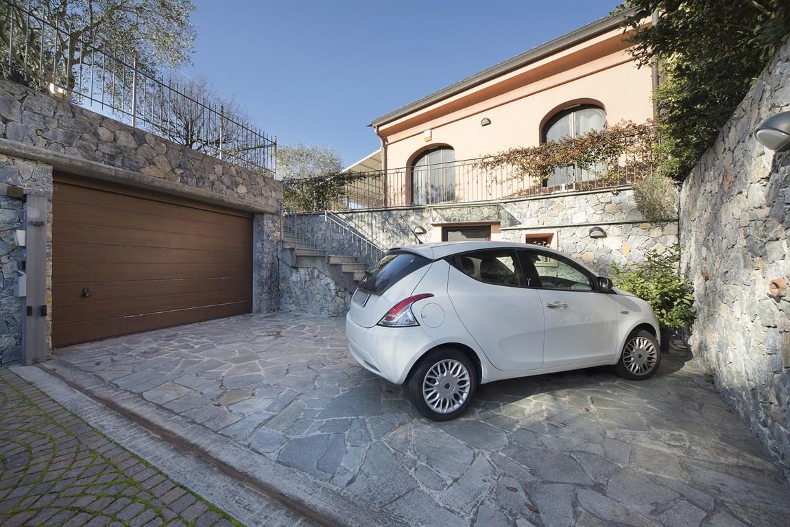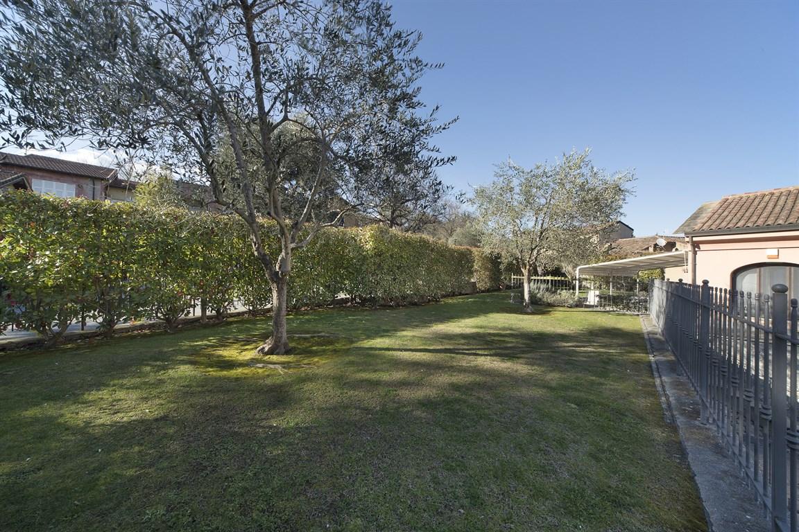 Garlenda, immersa nel verde del golf viene proposta in vendita una villetta su tre livelli, piano terra con ampio soggiorno, zona cucina, una camera da letto matrimoniale e bagno con finestra; al primo piano unica grande camera mansardata, nel seminterrato, che ha doppio accesso, dal box o dal piano terra, troviamo un ampio box di 25 mq., dal box si accede alla cantina, dalla quale si passa ad un apio magazzino, adesso adibito in parte in comoda camera, il resto troviamo un divano e una zona stireria, altro localino con bagno/lavanderia. per accedere al box vi é un cancello automatico privato che delimita anche lo spazio per un posto auto antistante alla saracinesca, come si potrà vedere dalle foto. ulteriore cancello motorizzato lo troviamo nella zona piano terra per accedere al terrazzo/cortile con all'interno ulteriori posto auto, antistante all'ingresso é stata istallata una tenda scorrevole che copre un'area di 24 mq. completa la proprietà un piacevole e curatissimo giardino a prato inglese con all'interno alcuni ulivi, chiaramente il giardino é dotato di impianto d'irrigazione automatico. la villetta ha il riscaldamento autonomo a gas e antifurto totale.