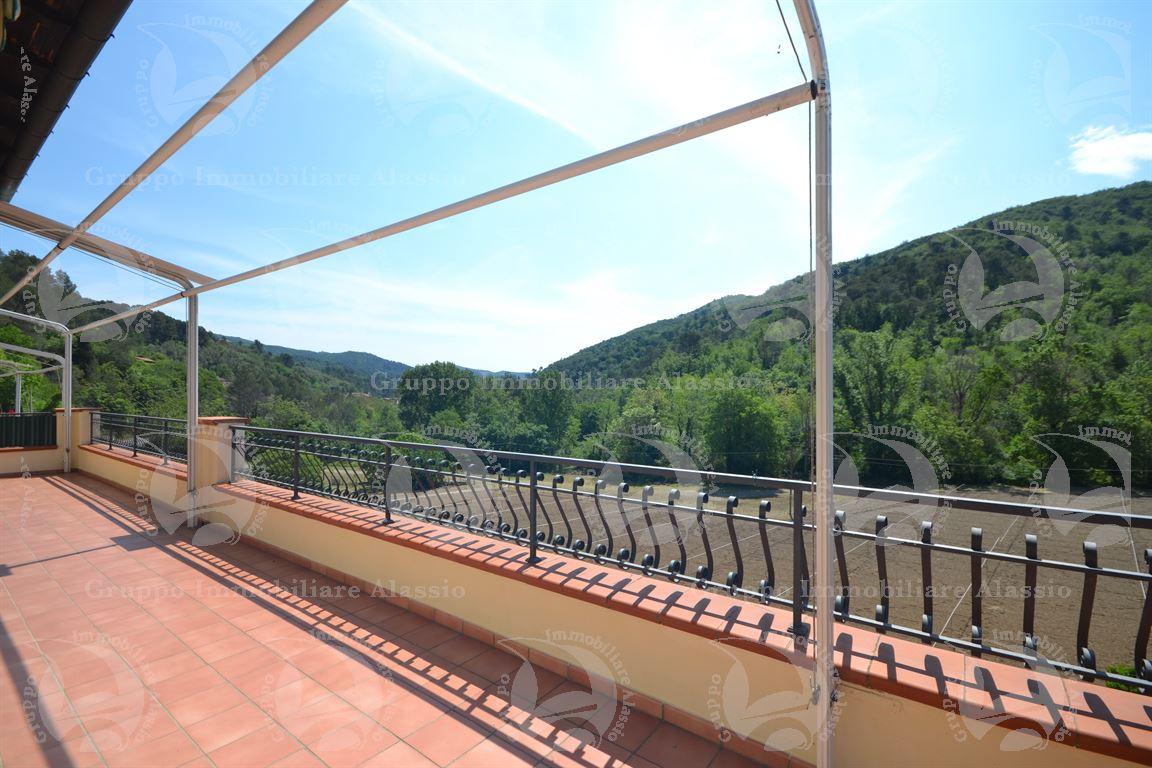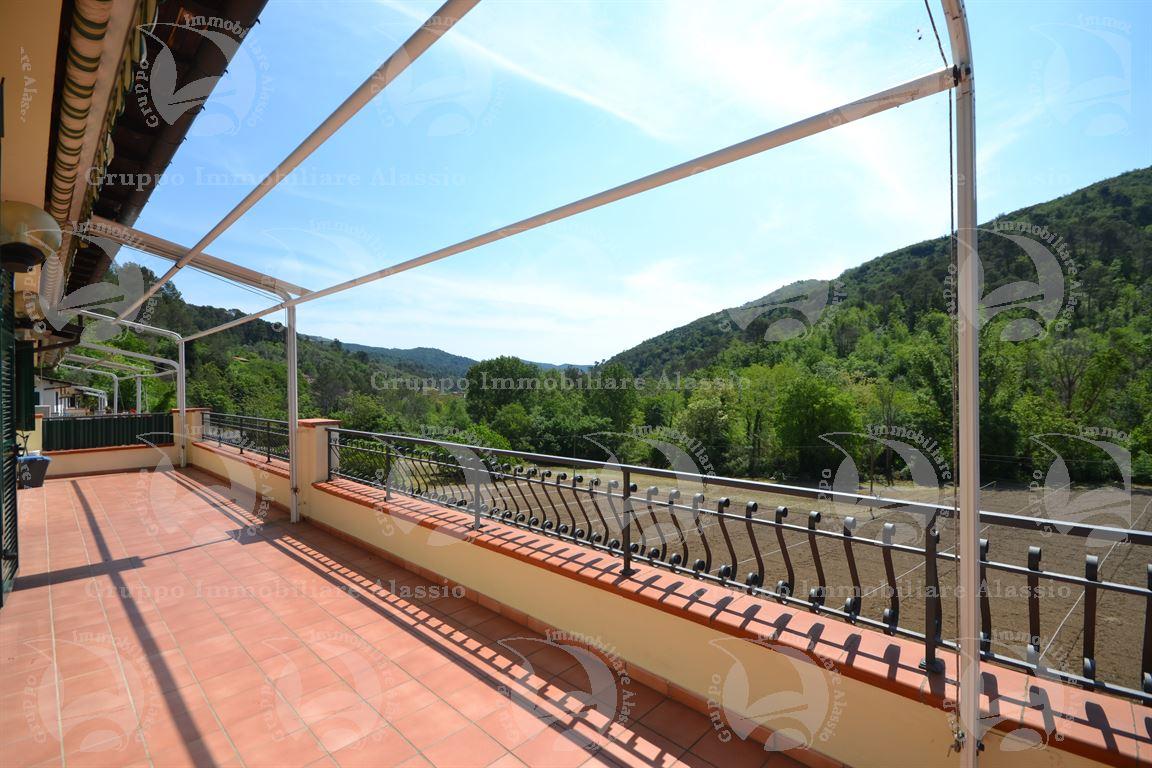 Nel primo entroterra di andora, proponiamo grande e luminoso appartamento in perfette condizioni con grande terrazzo abitabile. l'immobile ideale come prima casa o come casa vacanza è composto da: ampio terrazzo abitabile di oltre 30 mq, grande open space con cucina a vista, zona pranzo e soggiorno, tre camere da letto e due bagni e giardino. completa la proprietà un comodo posto auto sotto casa. possibilità di box auto e di circa 2000 mq terreno.