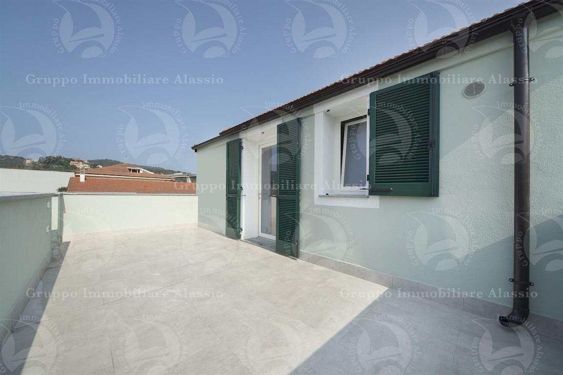 "appartamento in villa ristrutturata ad andora, con attenzione all'efficientamento energetico. situato al primo e ultimo piano, questo appartamento offre spazi ampi e luminosi. il soggiorno è dotato di zona cottura e si affaccia sullo splendido terrazzo di 25 mq, collegato al bel giardino attraverso una scala. il terrazzo è il luogo perfetto per godere del sole e dei momenti all'aperto. la tavernetta è collegata all'ampio garage di 35 mq, ideale per riporre la tua auto e gli oggetti di valore. l'appartamento è composto da due camere da letto matrimoniali, una delle quali con bagno padronale. il servizio principale è molto ampio e dotato di finestra, garantendo una piacevole ventilazione naturale. tutti gli affacci sono piacevoli e di respiro, e l'immobile risulta davvero luminoso. la posizione è ideale, con un comodo supermercato proprio sotto casa, il mare a circa 3 km e l'uscita dell'autostrada a soli 5 minuti. tutto l'immobile è finemente rifinito e completamente arredato nuovo, offrendo un ambiente piacevole e di comfort. questa è l'occasione ideale per acquistare un appartamento in una villa ristrutturata ad andora."