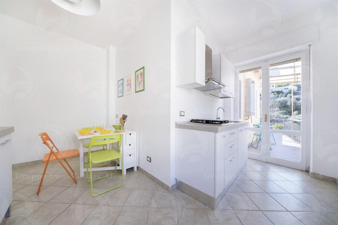 "situato nell'ultimo piano di una piccola palazzina in una zona residenziale tranquilla e verde, questo appartamento di 60 mq è il rifugio perfetto per chi cerca relax e comodità. la posizione è ideale, vicino al parco san rocco e al famoso tennis hambury, e comunque a pochi passi dal centro. l'appartamento si presenta perfetto e pronto per essere abitato. la cucina è separata e abitabile , con affaccio su un bel terrazzino che offre una vista aperta e panoramica. la sala e l'ampia camera matrimoniale si affacciano su un altro terrazzino, anch'esso con vista aperta e uno scorcio di mare. e per completare il tutto, un comodo box auto di 30 mq situato proprio sotto casa, per garantire sicurezza e comodità per la tua vettura. questo appartamento è il luogo ideale per trascorrere le tue vacanze, circondato dalla natura e dalla tranquillità, ma comunque vicino a tutti i servizi e le attrazioni del centro."