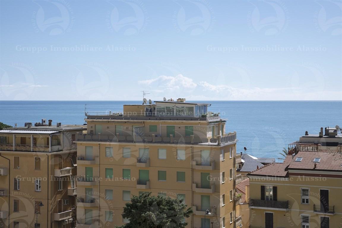 Alassio, zona levante a 150 metri del mare, proponiamo trilocale con splendida vista mare. l'appartamento è composto da: ingresso, soggiorno, sala da pranzo con balcone vista mare, cucina semi abitabile, due camere da letto e due bagni. l'immobile è in ottime condizioni e si trova al piano secondo di una palazzina dotata di ascensore. possibilità di posto auto in affitto. richiesta euro 460.000