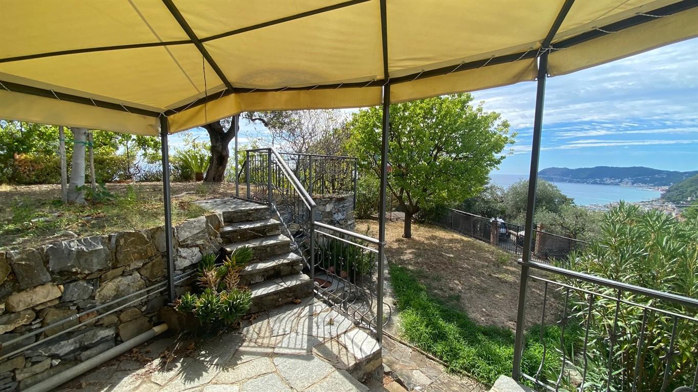 Siamo lieti di proporre in vendita questa casa indipendente vista mare con giardino privato e box auto, oltre ad un altro bilocale con posto auto, collocato all’interno della stessa proprietà ma con subalterni distinti. le presenti unità immobiliari sono ubicate in prima collina, nella soleggiatissima via rangè, distante pochi minuti dal mare tramite bicicletta elettrica o monopattino. l’immobile principale si sviluppa su una superficie di circa 120 mq, distribuiti in ingresso, soggiorno vista mare con cucina e porticato, due camere da letto, cameretta, bagno, locale lavanderia e cabina armadio. intorno alla proprietà vi sono circa 500 mq di giardino con vista mare ed un box auto collocato sotto ad una fascia. la seconda unità immobiliare, che si trova nello stesso mappale, ma con ingresso separato ed indipendente dalla strada superiore, possiede di una superficie di altri 50 mq circa ed è composta da un soggiorno con angolo cottura e terrazzino vista mare, un bagno, una camera da letto matrimoniale con finestra che mostra una poetica vista verso capo mele. completano la proprietà un altro posto auto scoperto ed un magazzino. la casa è da ristrutturare, ma si presenta con un ottimo potenziale. caratteristica principale della casa, oltre alla bellissima struttura architettonica, sono le ampie terrazze e i giardini che girano intorno alla casa.