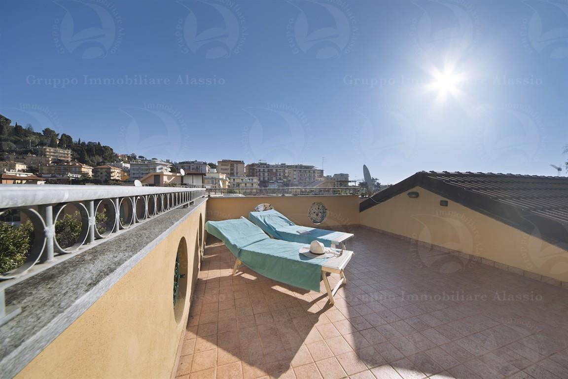 Alassio, a 500 metri dal mare, proponiamo villa completamente ristrutturata con giardino di proprietà e terrazzo. la casa è composta da:ingresso, soggiorno con angolo cottura che si affaccia su corte esterna e giardino, tre camere da letto e due bagni. al piano superiore grande terrazzo. completano la proprietà un box auto doppio e cantina.in zona si trovano tutti i servizi di primaria necessità raggiungibili a piedi. richiesta € 650.000